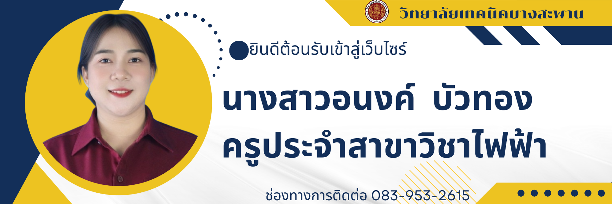ยินดีต้อนรับเข้าสู่เว็บไซต์ของครูอนงค์ บัวทอง สาขาวิชาไฟฟ้า วิทยาลัยเทคนิคบางสะพาน