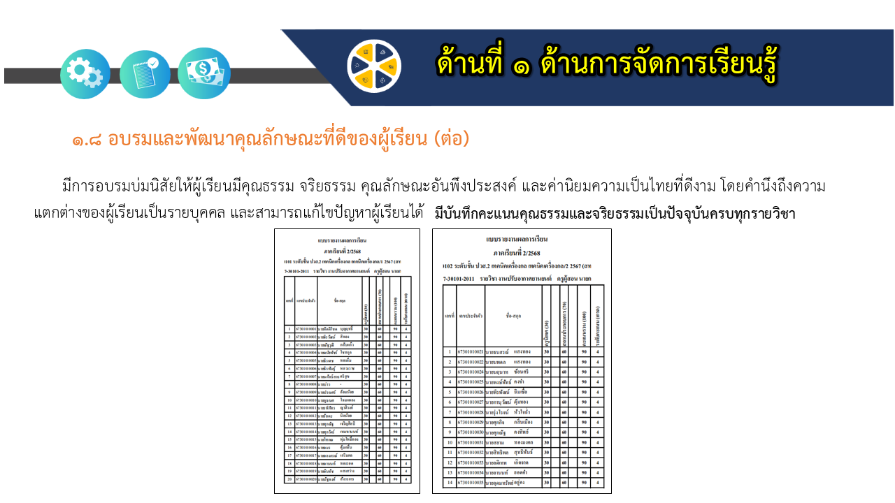 1.8 อบรมและพัฒนาคุณลักษณะที่ดีของผู้เรียน
