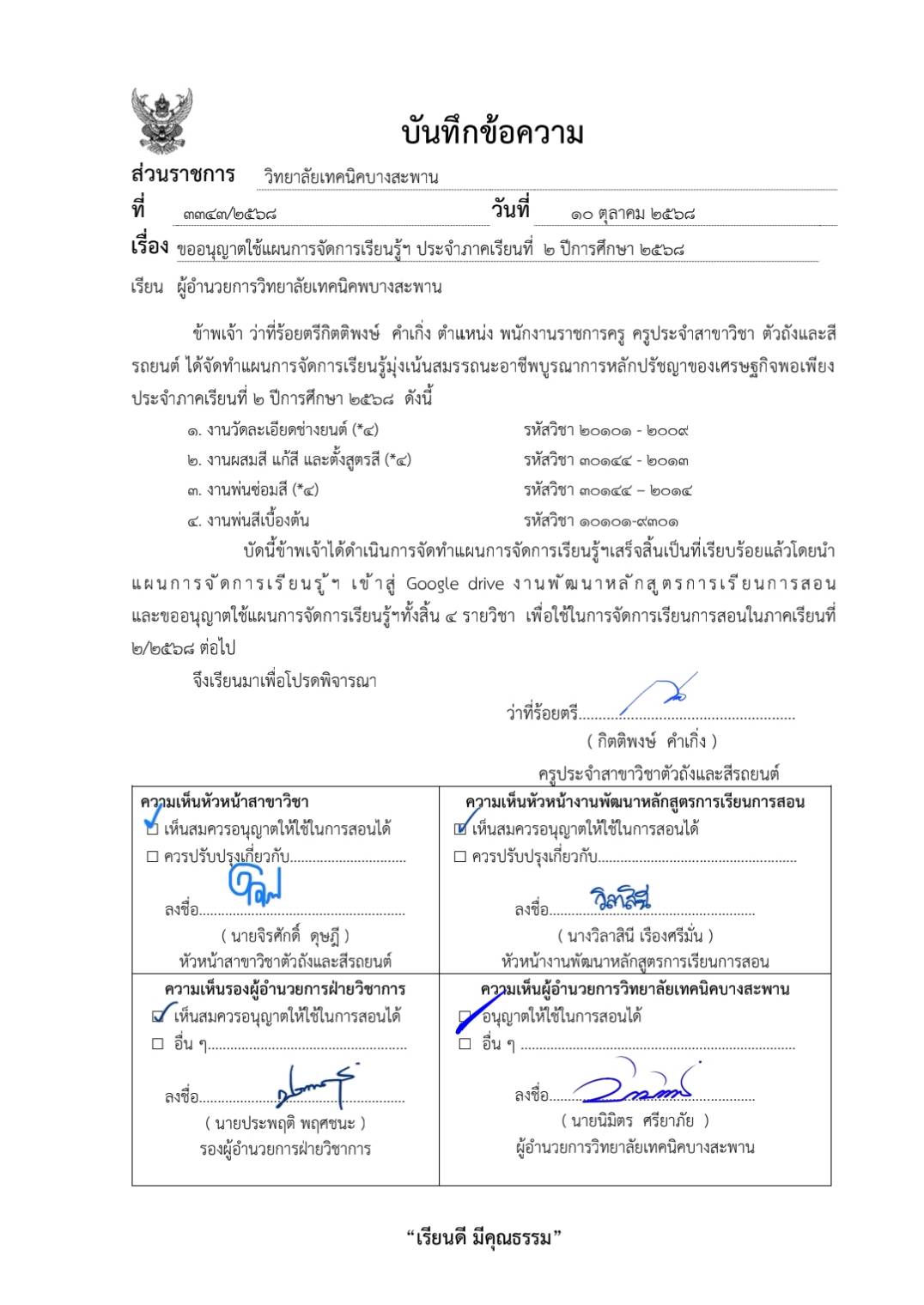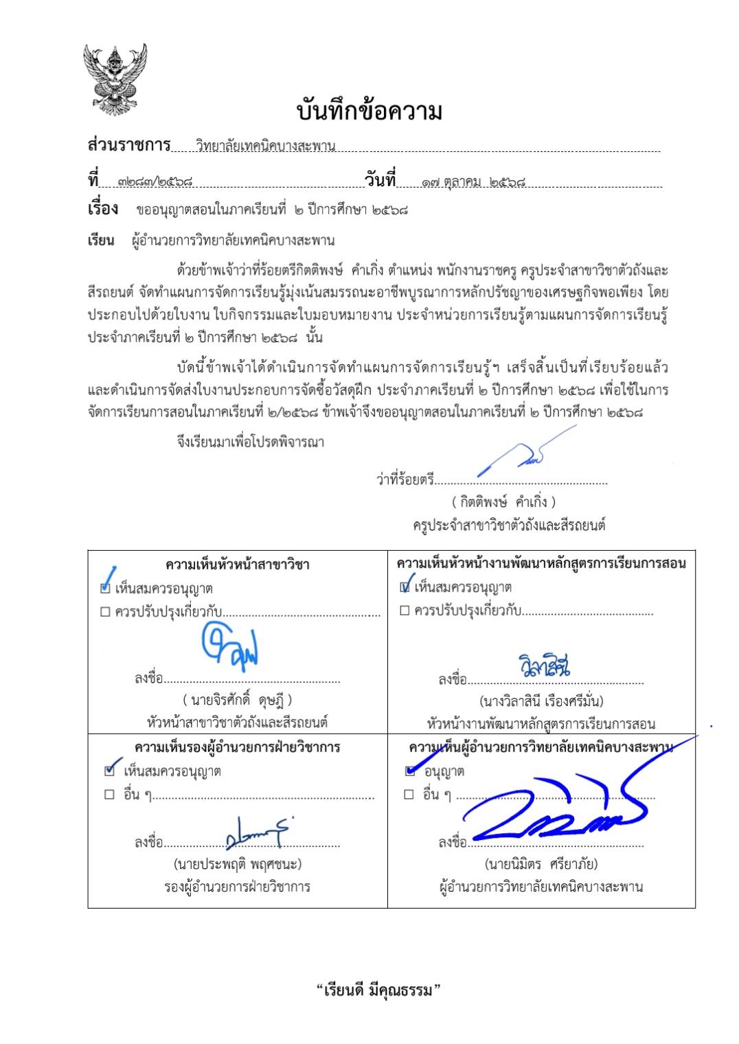 ใบขออนุญาตสอน 2/2568