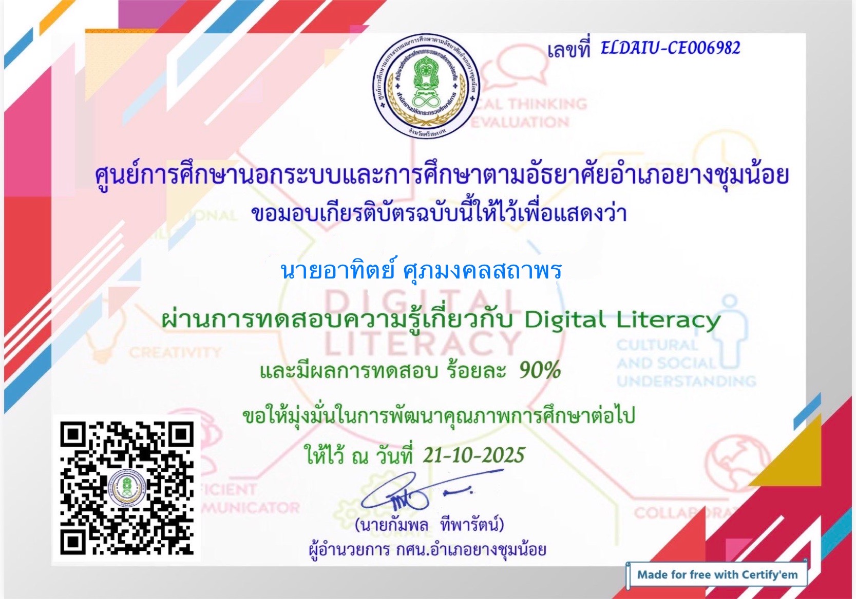 ผ่านการทดสอบความรู้เกี่ยวกับ Digital Literacy