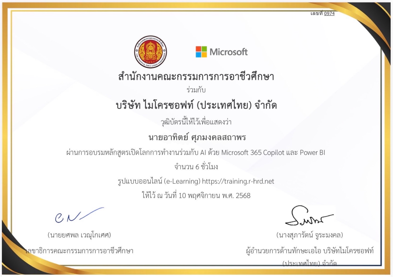 ผ่านการอบรมหลักสูตรเปิดโลกการทำงานร่วมกับ AI