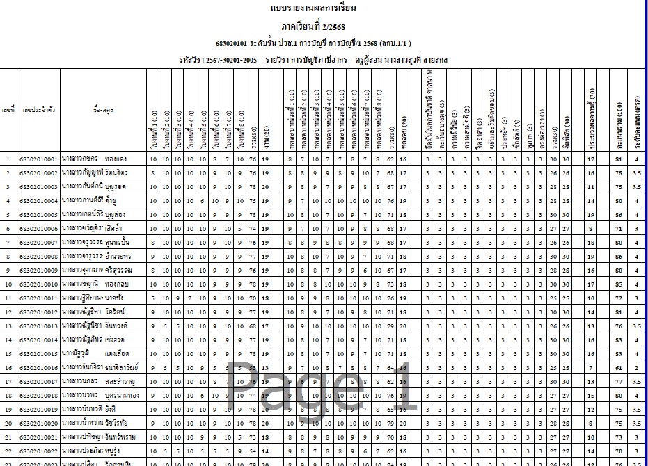 ►คะแนนเก็บวิชาการบัญชีชั้นสูง 1 สกบ.1/1 (สอนสัปดาห์ที่ 8-10)