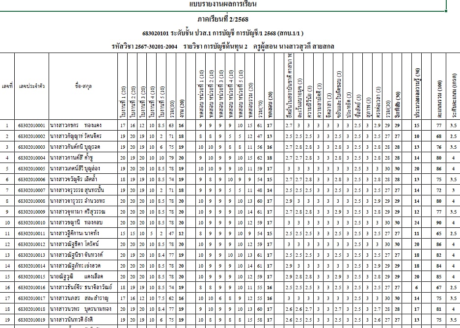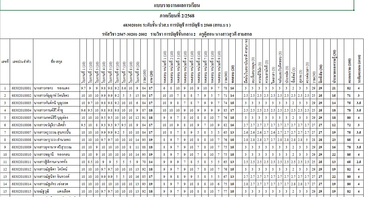 ►บันทึกคะแนนคุณธรรมและจริยธรรมวิชาการบัญชีชั้นสูง 1 สกบ.1/1 (สอนสัปดาห์ที่ 8-10)