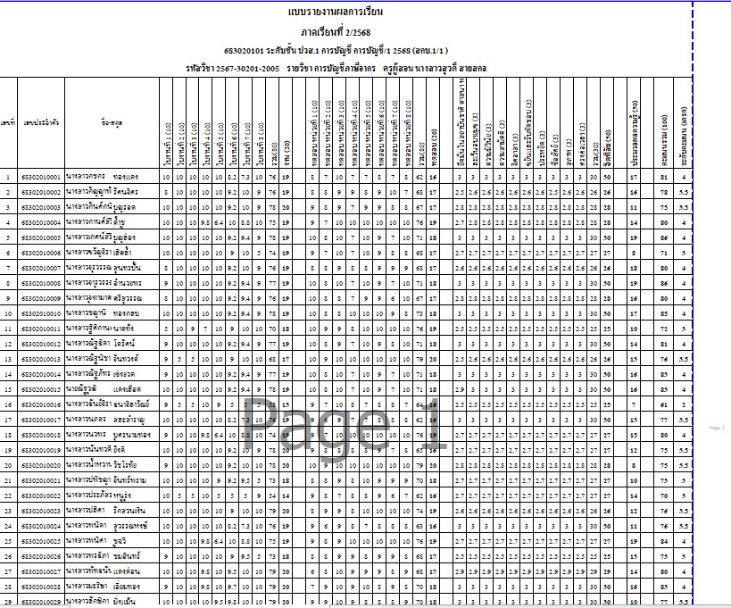 ►บันทึกคะแนนคุณธรรม จริยธรรม วิชาการบัญชีชั้นกลาง2 สกบ.1/1 (สอนสัปดาห์ที่ 6-8-9)