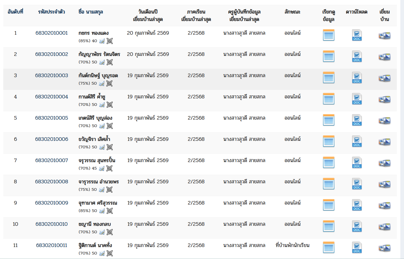 -มีการบันทึกข้อมูลกิจกรรมโฮมรูมและการเยี่ยมบ้านนักเรียนในที่ปรึกษา ครบตามกระบวนการ