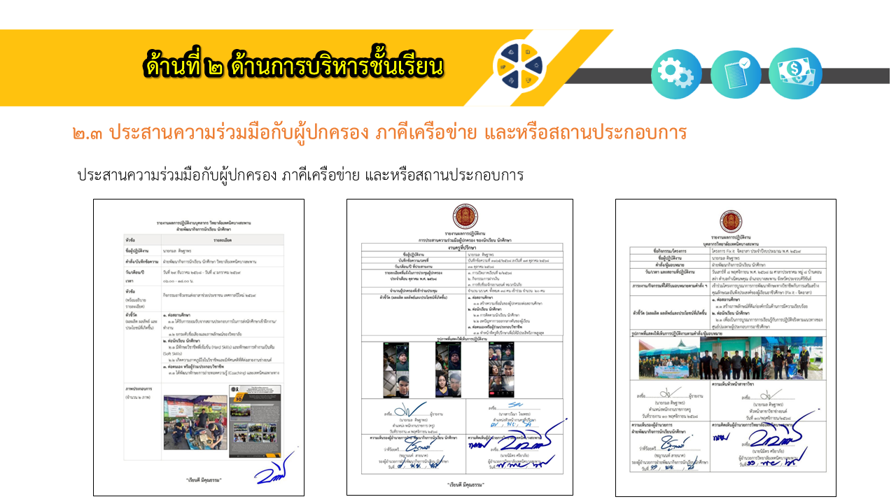 2.3 การประสานความร่วมมือกับผู้ปกครอง ภาคีเครือข่าย และหรือสถานประกอบการ