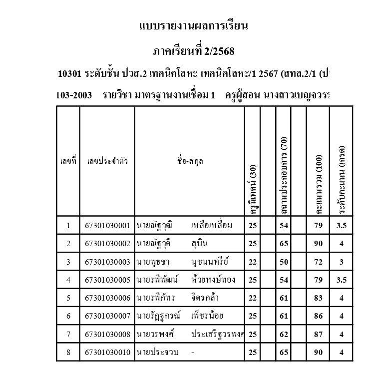 2.1 จัดทำข้อมูลสารสนเทศของผู้เรียนรายวิชา