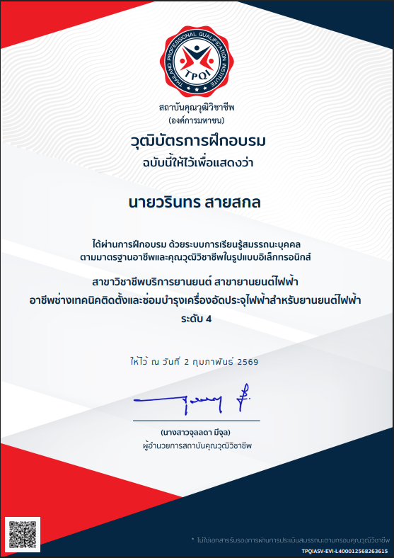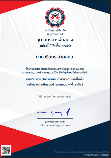 ครูผู้ควบคุม ทักษะงานยานยนต์ไฟฟ้า ระดับ ปวส.