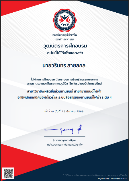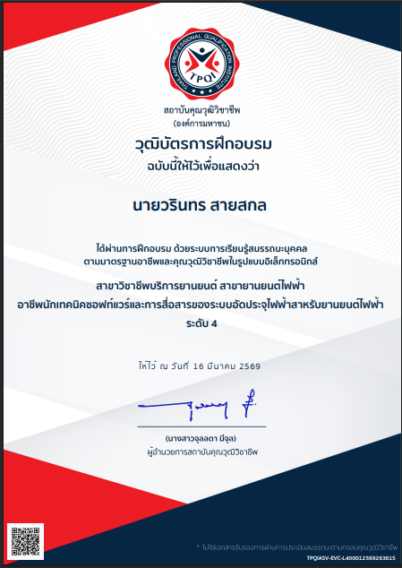 อาชีพนักเทคนิคซอฟท์แวร์และระบบสื่อสารของยานยนต์ไฟฟ้า ระดับ 4
