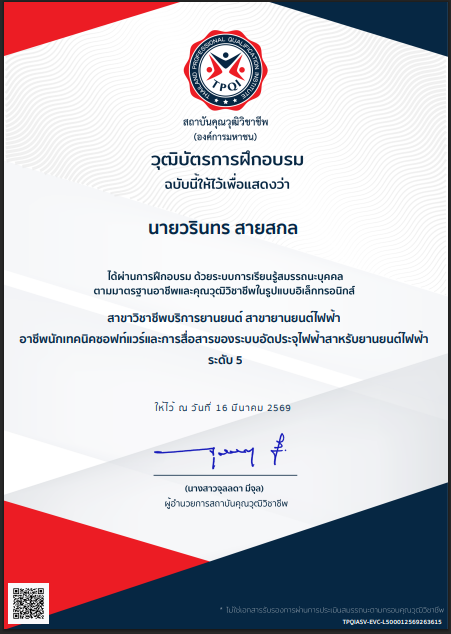 อาชีพนักเทคนิคซอฟท์แวร์และการสื่อสารของระบบอัดประจุไฟฟ้าสำหรับยานยนต์ไฟฟ้า ระดับ 5
