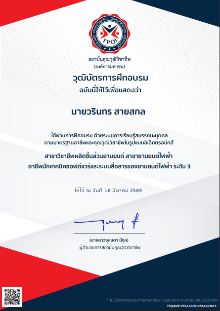 อาชีพนักเทคนิคซอฟท์แวร์และระบบสื่อสารของยานยนต์ไฟฟ้า ระดับ 3