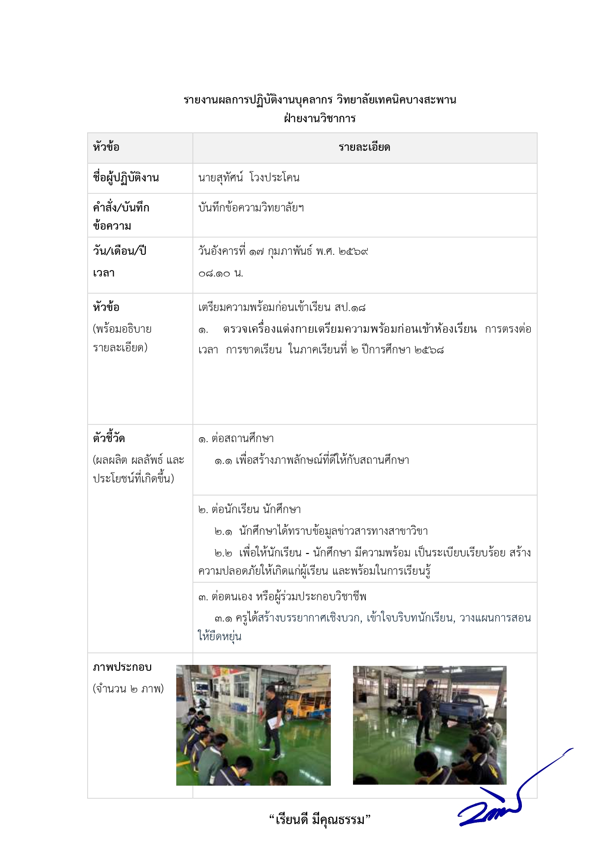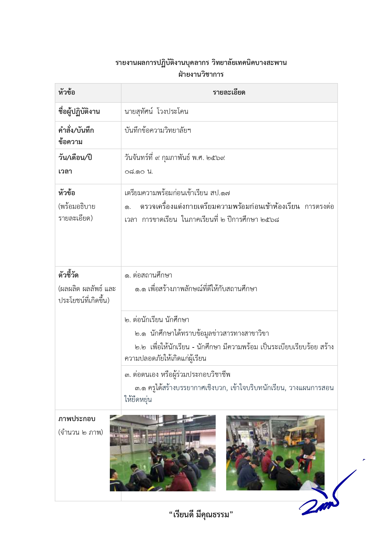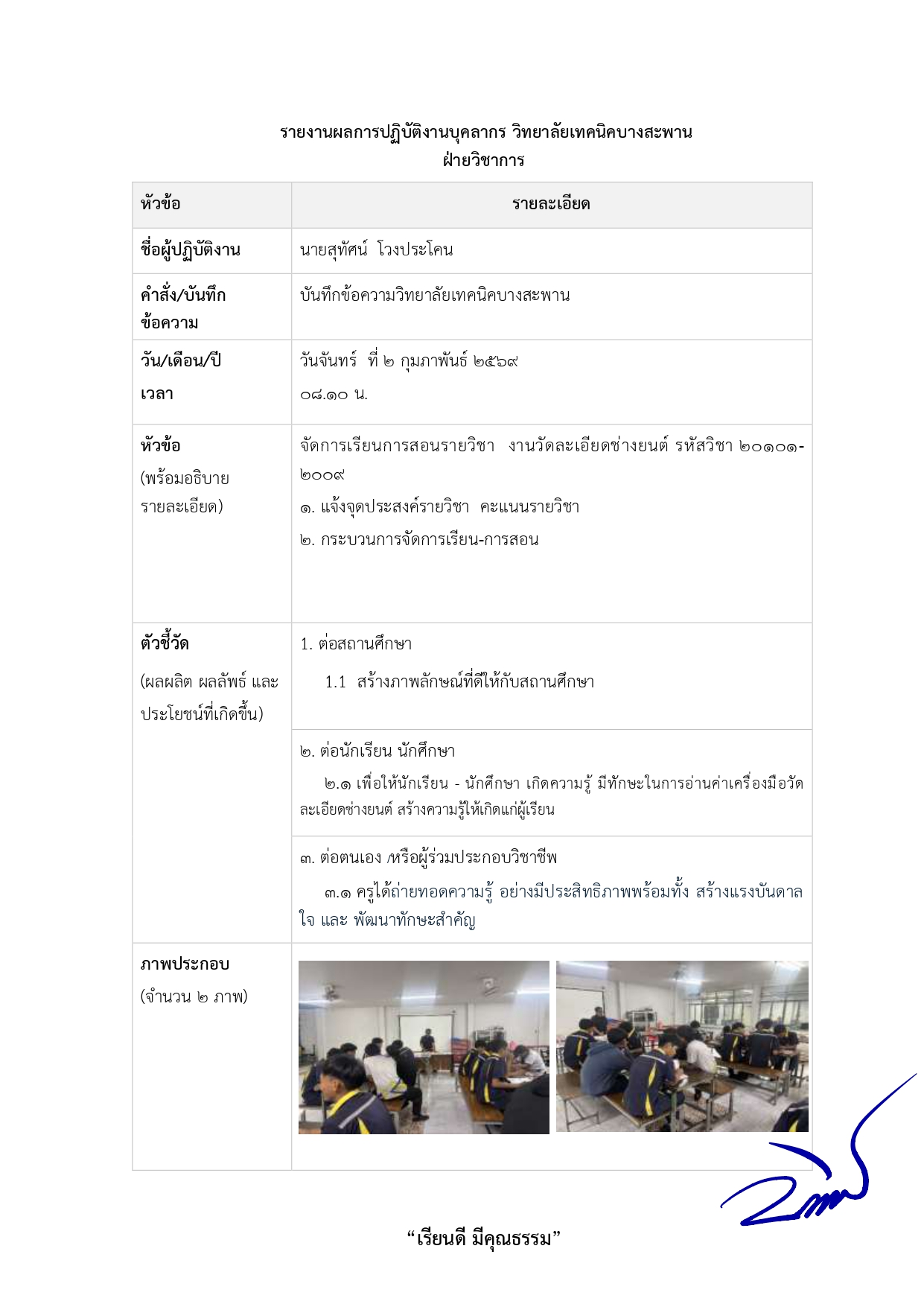 2.3 ปฏิบัติงานวิชาการและงานอื่น ๆ ของสถานศึกษา