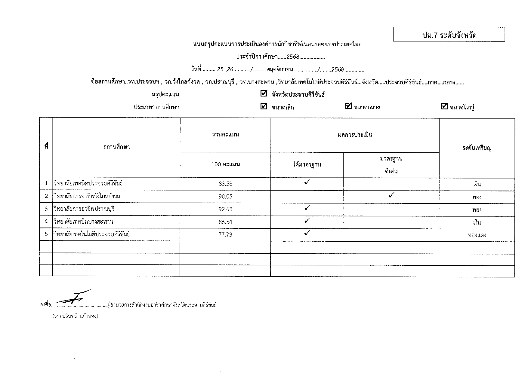 ผลงานการประเมินองค์การระดับจังหวัด